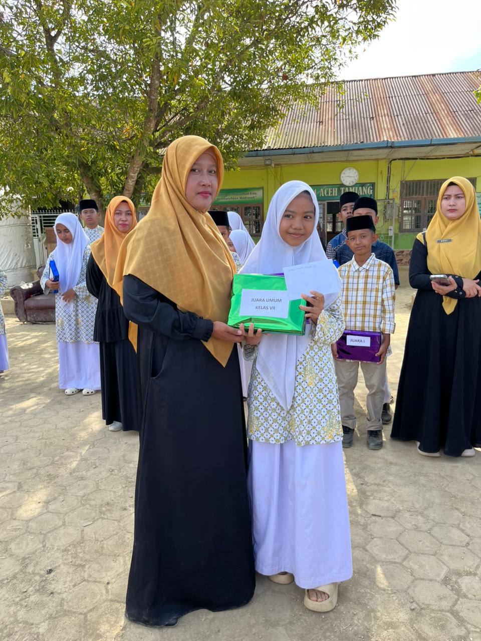 MTsN 1 Aceh Tamiang Gelar Pembagian Raport Semester Ganjil, Dirangkai dengan Penyerahan Bantuan Buku dan Santunan Yatim