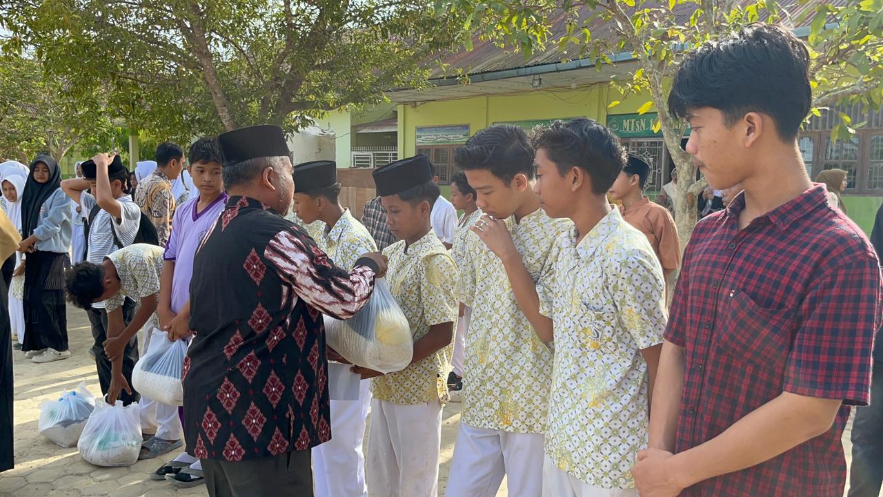 Tualang Cut/14/02/26 – Suasana khidmat dan penuh kekeluargaan menyelimuti Madrasah Tsanawiyah Negeri (MTsN) 1 Aceh Tamiang pada hari ini. Madrasah secara resmi membagikan Raport Semester Ganjil Tahun Pelajaran 2025/2026 kepada seluruh siswa, sekaligus melaksanakan aksi sosial berupa penyerahan bantuan buku tulis dan santunan bagi siswa yatim/piatu.